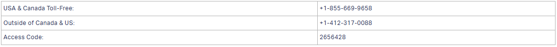 Participants should dial-in at least 15 minutes prior to the start of the call to ensure placement in the conference on time.