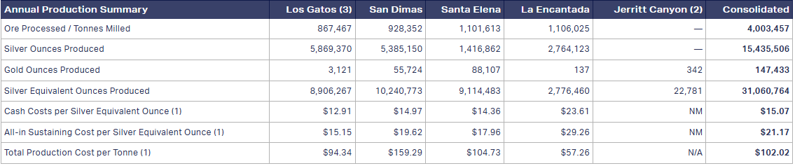- Operational metrics calculated in the table above are reported on an attributable basis to account for the Company’s 70% ownership of the Los Gatos Joint Venture that owns the Los Gatos Silver Mine.